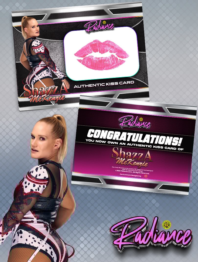 We Are THRILLED to Announce our newest release of the exclusive Radiance Kiss Card Series ! This Limited edition KISSED Trading Card features Shazza McKenzie ! This limited series release is limited to ONLY 50 CARDS.
